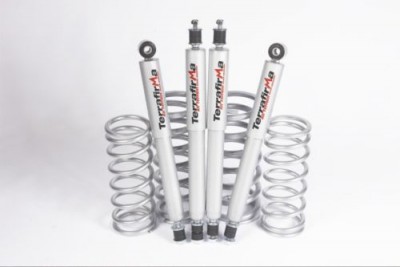Terrafirma heavy load suspension kit, +2" coil springs and Terrafirma All Terrain shock absorbers.